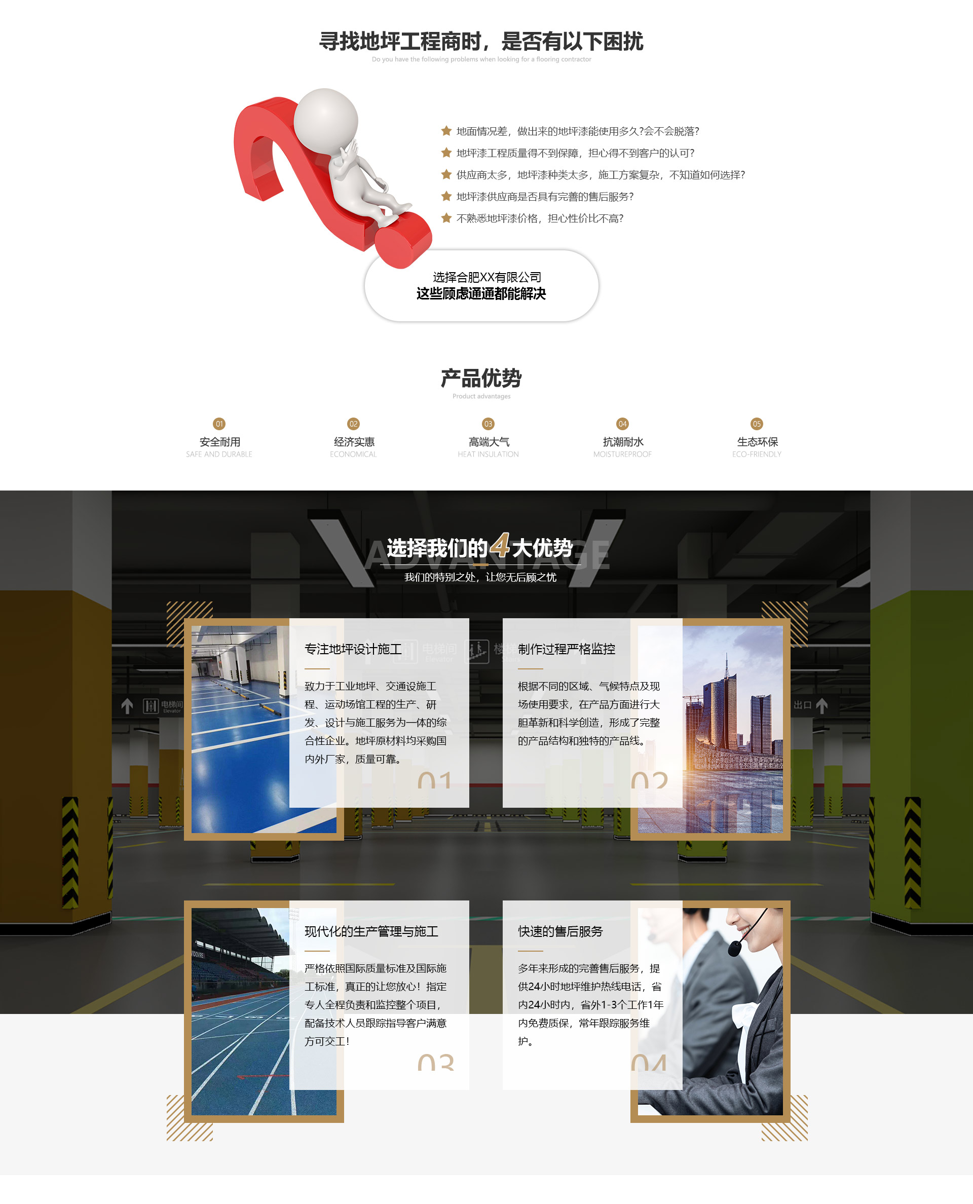 合肥xx有限公司是一家全面从事现代化工业厂房地坪、墙面涂料研发、设计、施工于一体的专业化公司。公司凭借自身的技术优势能准确地对各种不同环境条件下的使用场所设计和制造的工业地坪和墙面涂装系统。优良的品质、良好的信誉,使我们赢得了广大客户的大力支持和信赖。 本公司主要承接各种环氧树脂地坪,环氧自流平地坪、环氧树脂防静电地板、防腐工程、金刚砂耐磨地坪、混凝土渗透性密封剂、墙面涂料工程等;广泛应用于电子、微电子、光学、生化、制药、食品、 印刷、化工医疗器械、精密机械、电镀、塑胶五金、各种喷涂车间和汽车制造等行业。