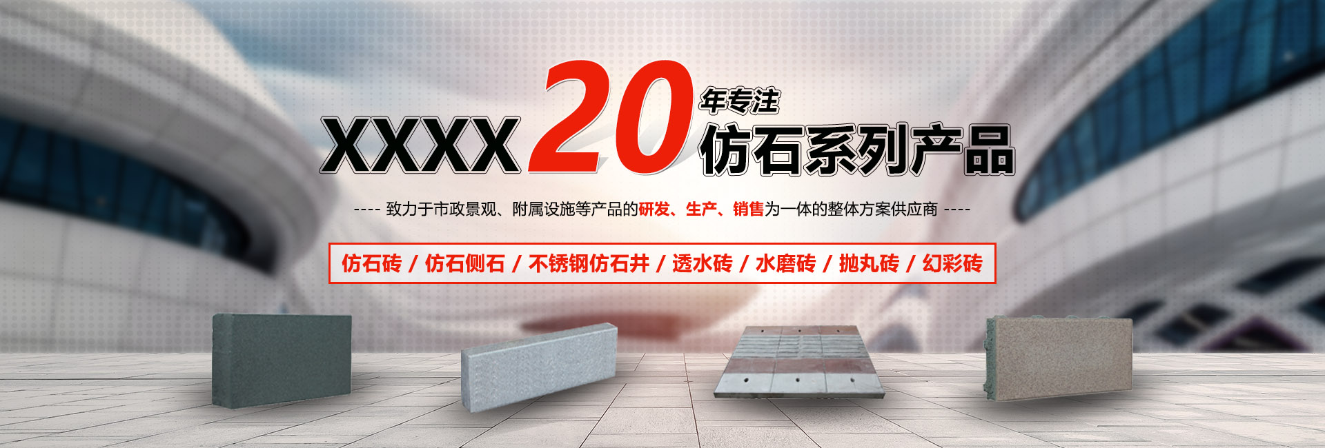 安徽xxxx有限公司是一家致力于市政景观、附属设施等产品的研发、生产、销售为一体的整体方案供应商,我们的仿石路面砖、仿石侧石、不锈钢仿石定制井盖产品是仿石系列产品的行业综合企业。