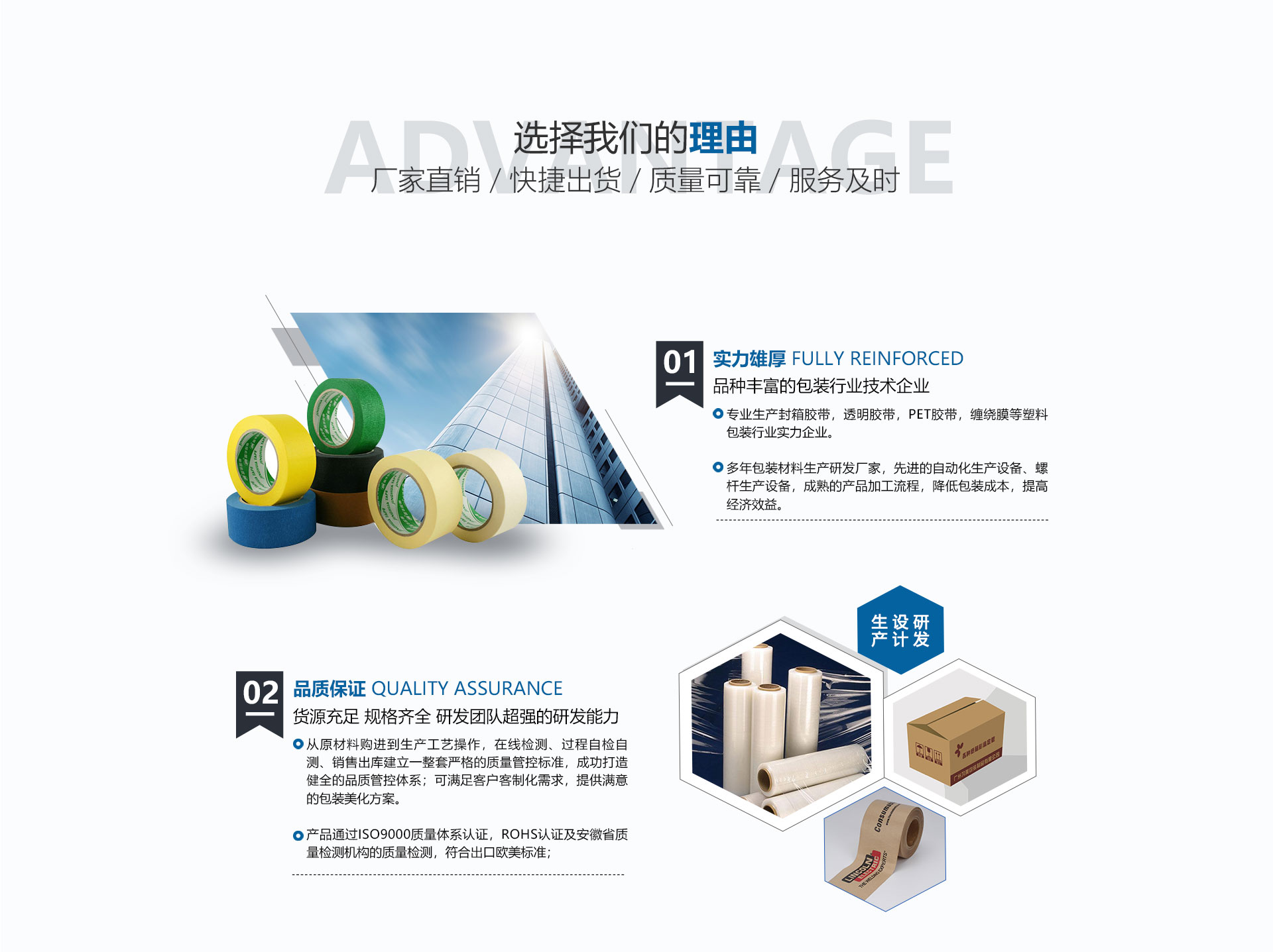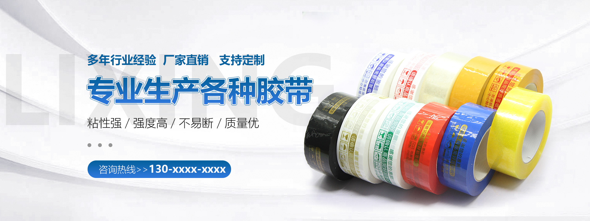 主营产品:封箱胶带,透明胶带,PET胶带 ,缠绕膜、保护膜,订制胶带等,并且可为客户定制各种规格的胶带成品。