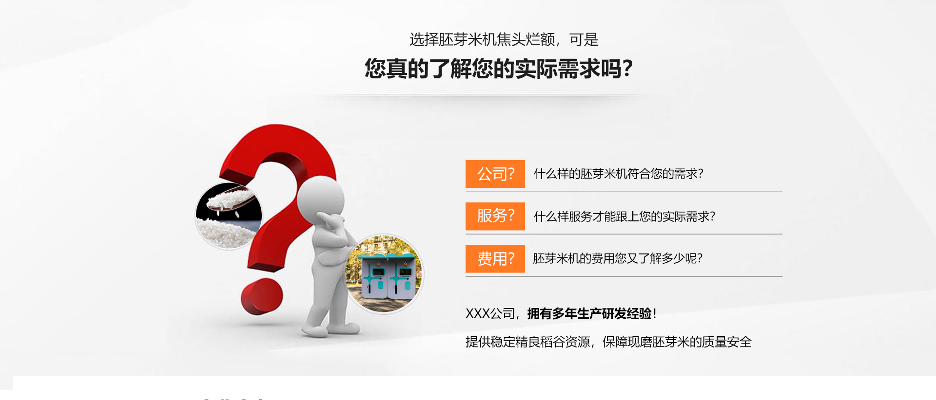 xx科技是一家专业从事智能现磨胚芽米机研发,生产,销售,运营服务为一体的粮机制造企业。公司位于合肥高新技术开发区内,拥有年产10000台套的生产能力。公司现有员工60多人,其中大学以上学历占80%,技术研发团队近10人。公司现拥有11项计算机软件著作权,获得了10多项实用新型专利证书,知识产权数量稳居同行首位。公司始终站在行业科技发展的前沿,以用户需求为导向,在全国率先研发出集三大智能,16项核心科技于一身智能米机,开启了现磨胚芽米机“全智能”时代。公司以质量拓展市场,秉持客户利益至上的经营理念,产品已畅销全国各地20多个省市区,同时建设有覆盖全国的水稻供应链体系,为用户提供稳定优质稻谷资源,保障现磨胚芽米的质量。磨鲜宝智能现磨胚芽米机已走进千千万万中国老百姓的身边,深受全国用户的喜爱和青睐。xx科技已经成为大米新零售行业领航者,全民胚芽米消费引领,国家“节粮减损”战略践行者。